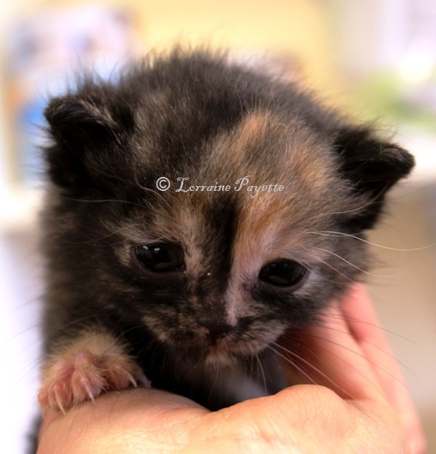This tiny little girl, small enough to rest comfortably in the palm of a hand, was one of the 22 kittens abandoned at the Gananoque and District Humane Society on April 24. It is not yet known how many are males, how many females, or how many will survive this tragic experience.