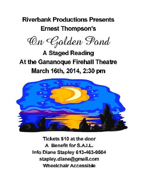 (Gananoque, ON) Gananoque’s Riverbank Productions will be presenting a staged reading of “On Golden Pond”, an award winning play by Ernest Thompson.