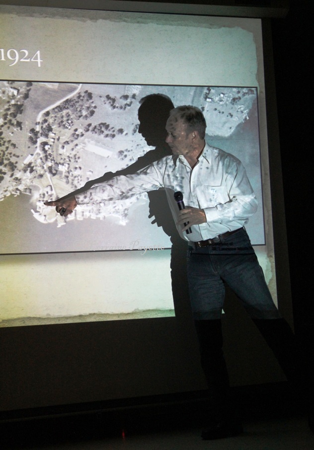 1907 Scandal in Rockport – Gananoque – April 15, 2014 – IMG_2890cropresizecopyright Published May 4, 2014 at 632 × 906 in The Scandal that Rocked Rockport Brian Phillips highlighting points of interest during the presentation