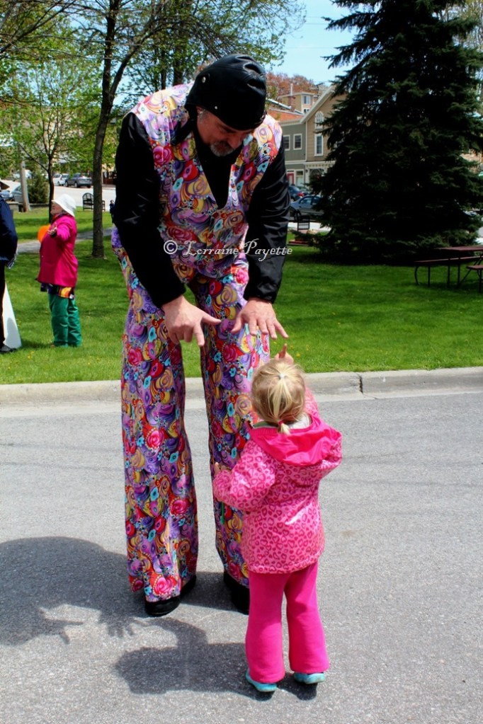 Chalk the Walk – Gananoque – May 17, 2014 – IMG_4858rotresizecopyright Published May 24, 2014 at 691 × 1037 in Chalk the Walk Kicks-Off Season for Gananoque “Princess” Pamela, 3, counts the eight-foot-tall man’s fingers