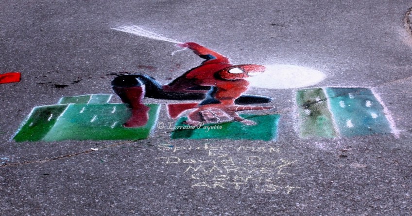 Chalk the Walk – Gananoque – May 17, 2014 – IMG_4925cropresizecopyright Published May 24, 2014 at 1167 × 614 in Chalk the Walk Kicks-Off Season for Gananoque The Amazing Spiderman by David Day