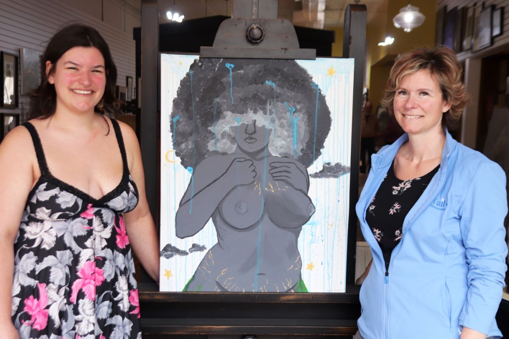 “I have some of my paintings in the TLC (the library) and it’s interesting because some of them have eyeballs,” she said. “There’s blood, organs in the paintings, and they’re in clear sight, and the TLC is used by everyone. All ages are seeing that, but they wouldn’t let this piece of art which shows a body – a female body with normal flaws – they wouldn’t let me put that up.”