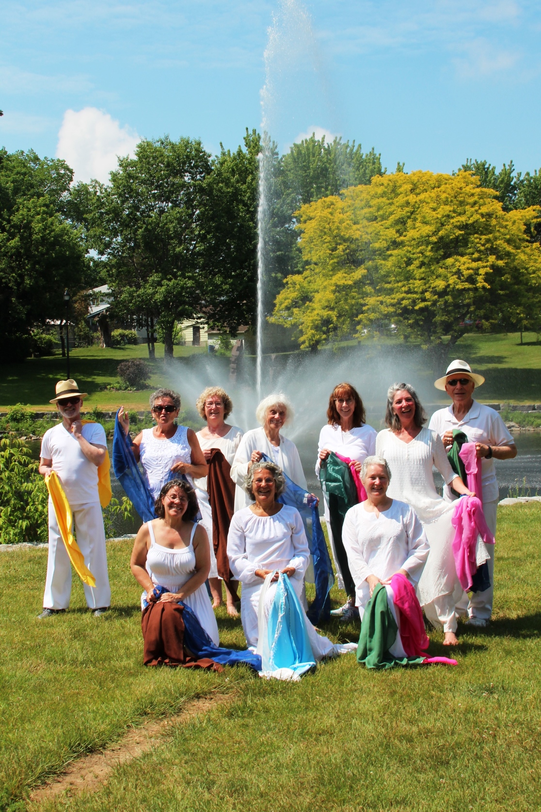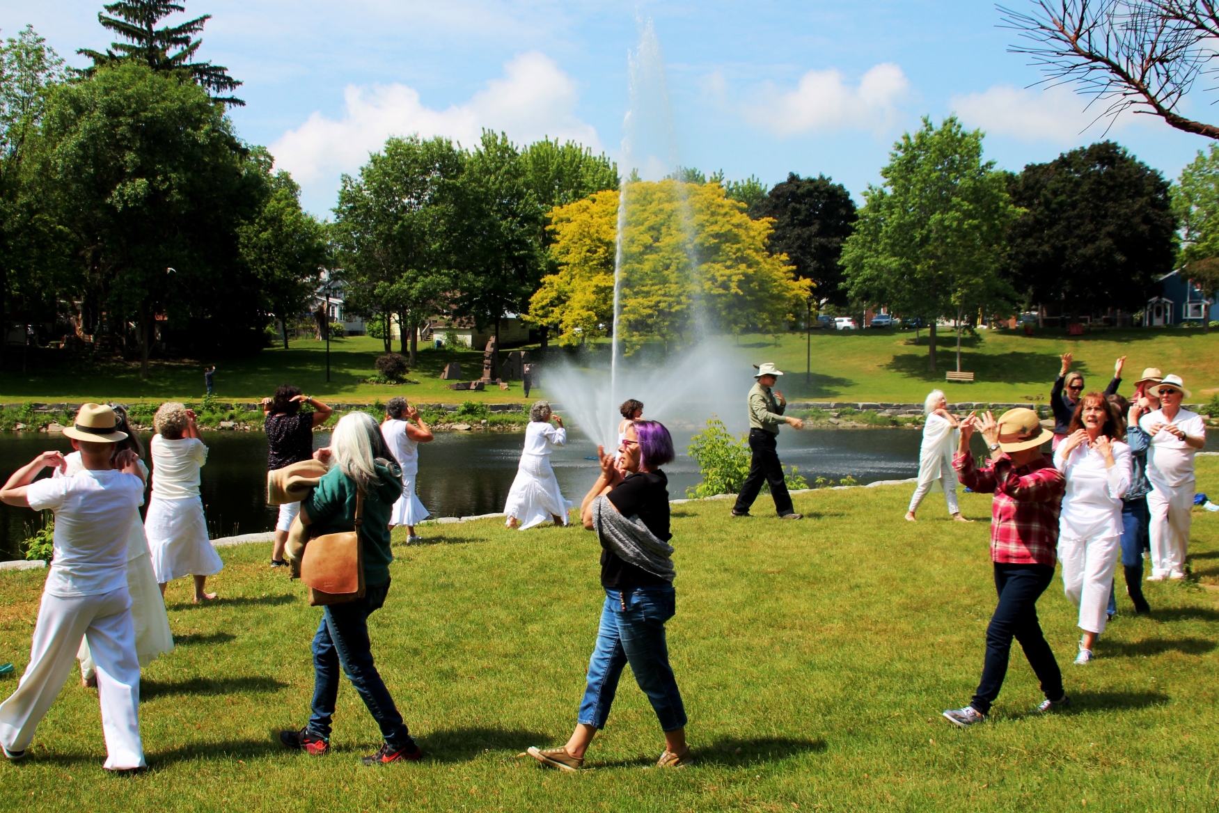 (Gananoque, ON – written June 11, 2023) Under bright sunny skies freshly washed clear of smoke by gentle rains, a team of 10 local dancers gathered in Confederation/Sculpture Park in Gananoque to perform Global Water Dances. This year’s local focus was on algae in the local waters.
