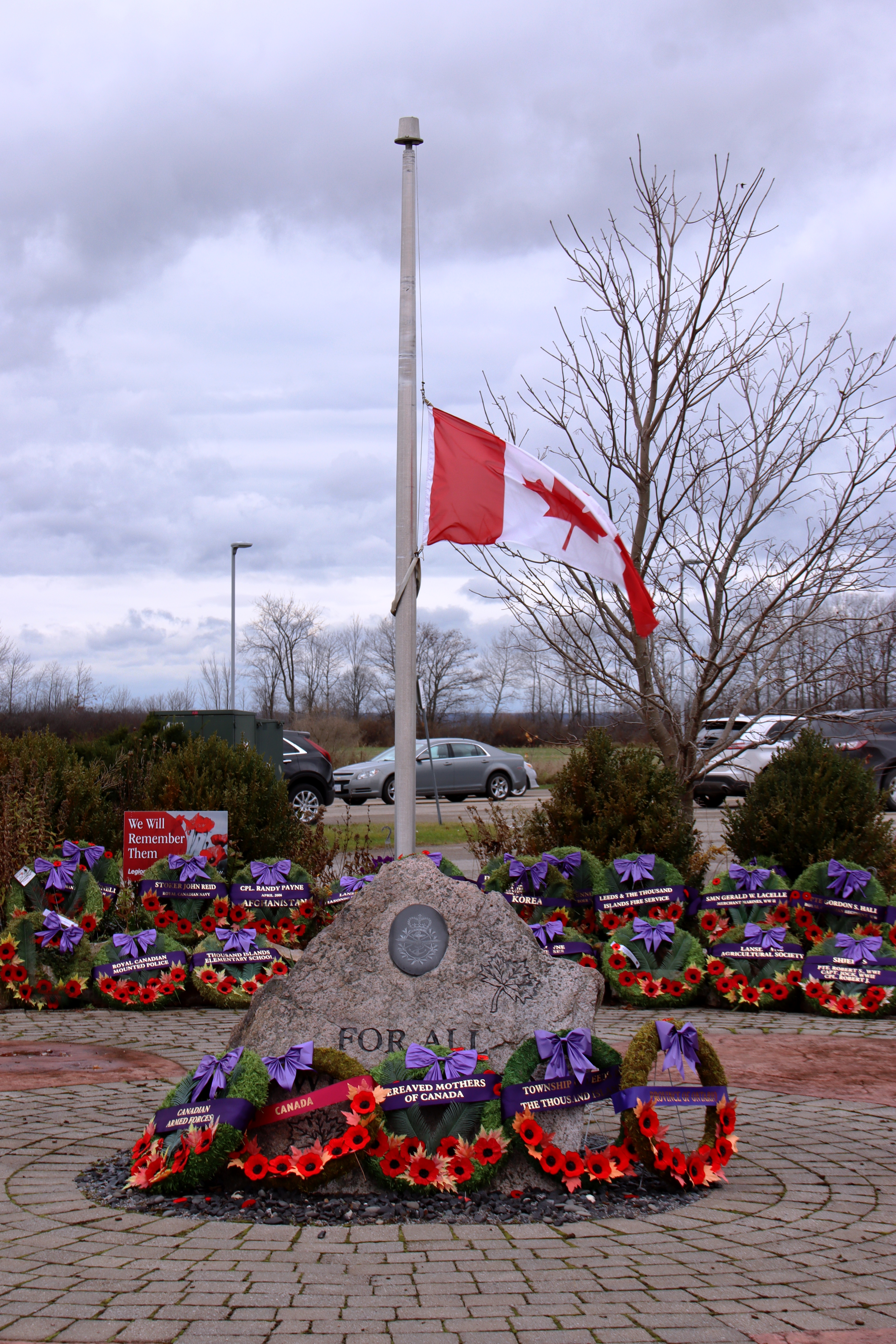 “This year marked the 75th anniversary of the allied victories over Germany and Japan which ended the Second World War period the fighting claimed the lives of 45,000 Canadian soldiers, sailors, and airmen, including 25 men from the Gananoque area. The names on this memorial remind us that maintaining freedom and peace comes at great cost.”